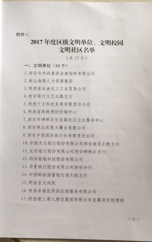 千方科技被評(píng)選為“碑林區(qū)文明單位”